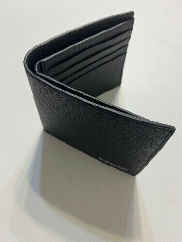 Features: Folding, Eight card slots, Hand-painted edges, Note compartment with divider for all currencies, Two slip pockets, Printed Burberry lettering at front