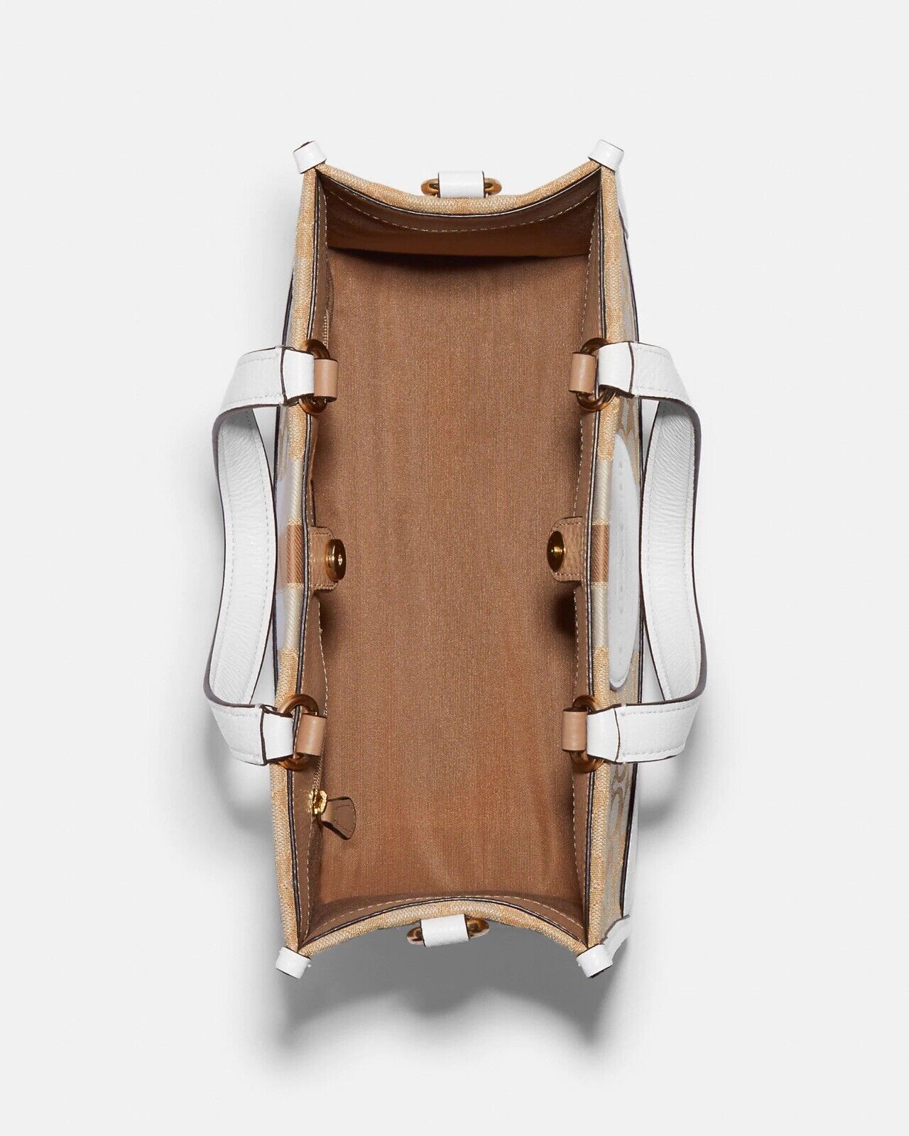 Coach Dempsey Carryall Tote Signature Khaki White Jacquard Stripe Patch Bag