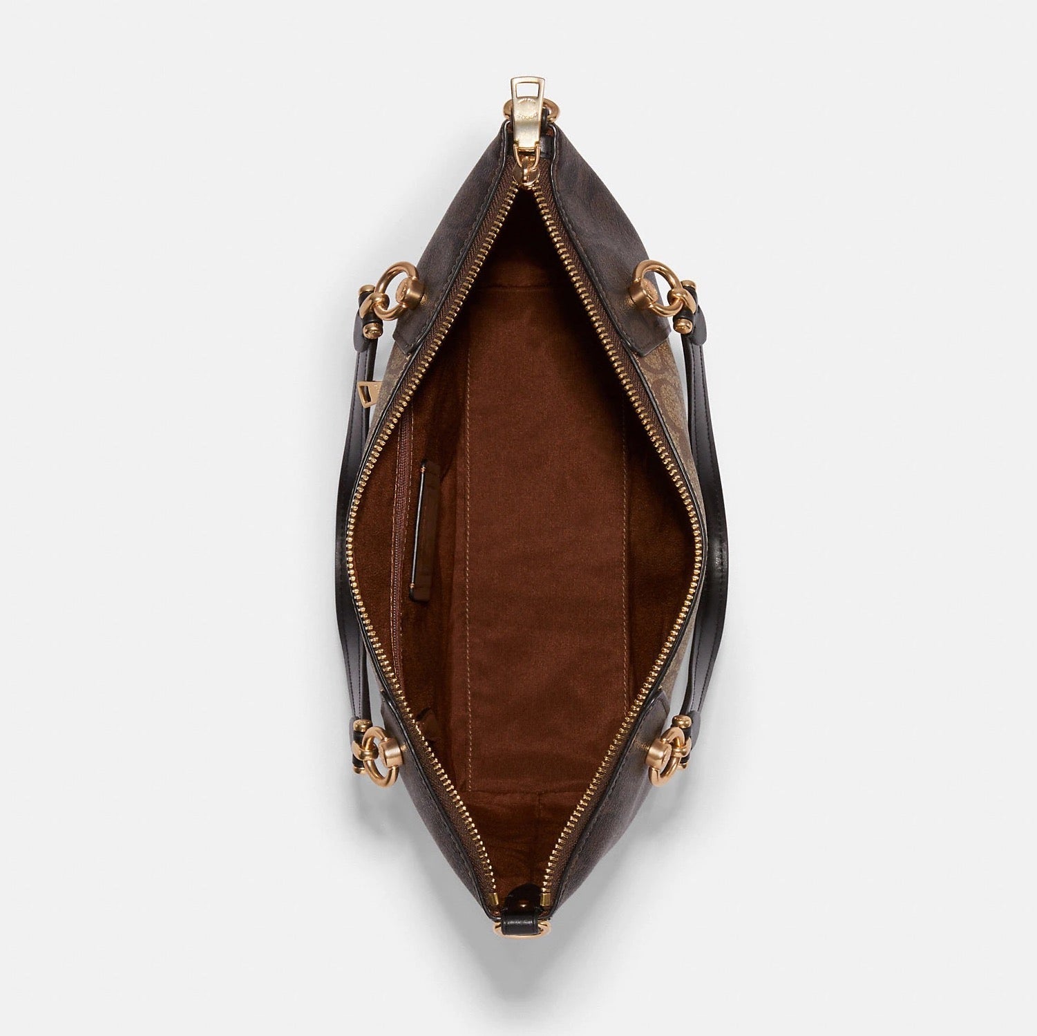 Coach Kacey Satchel in Blocked Signature Canvas in Khaki Brown Multi