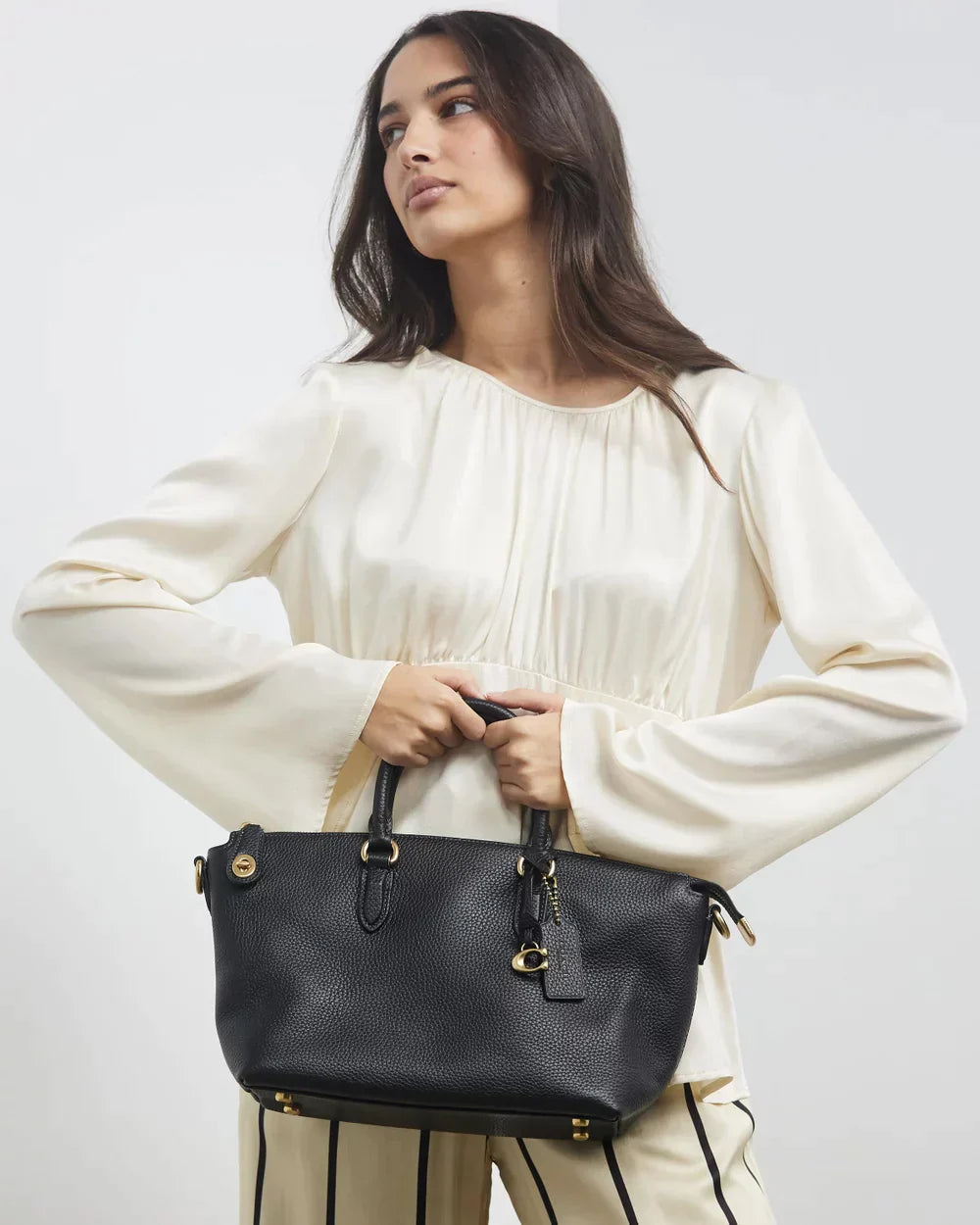 Established in 1941, esteemed fashion label COACH has expanded to maintain only the highest quality of workmanship in all of its collection from apparel to accessories. The feminine and stylish Soft Pebble Leather Cara Satchel Bag is a luxe accessory that adds a touch of sophistication to any outfit, and can be paired with a midi dress and pumps for a chic and elegant look.