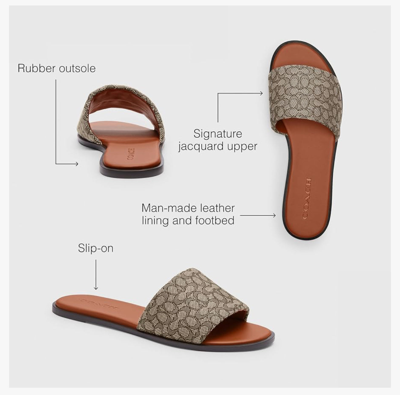 - Editor's Notes: An easy slip-on-and-go design, our signature Holly is an effortlessly sophisticated Coach sandal