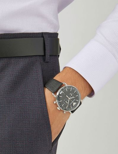 Emporio Armani Men’s Chronograph Quartz Leather Strap Black Dial 43mm Watch AR11143