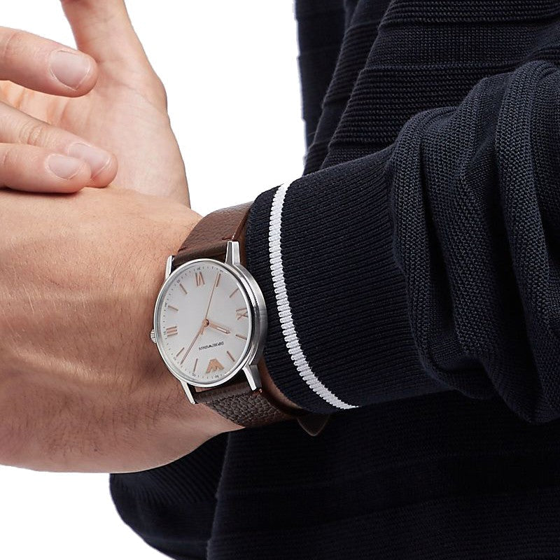 Emporio Armani - Men's Three-Hand Brown Leather Watch AR11173