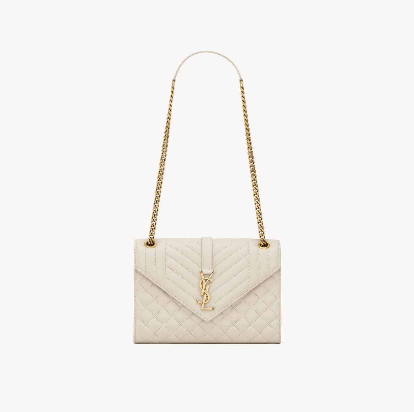 A TIMELESS ENVELOPE BAG IN LAMBSKIN WITH VERTICAL, CHEVRON AND DIAMOND QUILTED TOPSTITCHING.