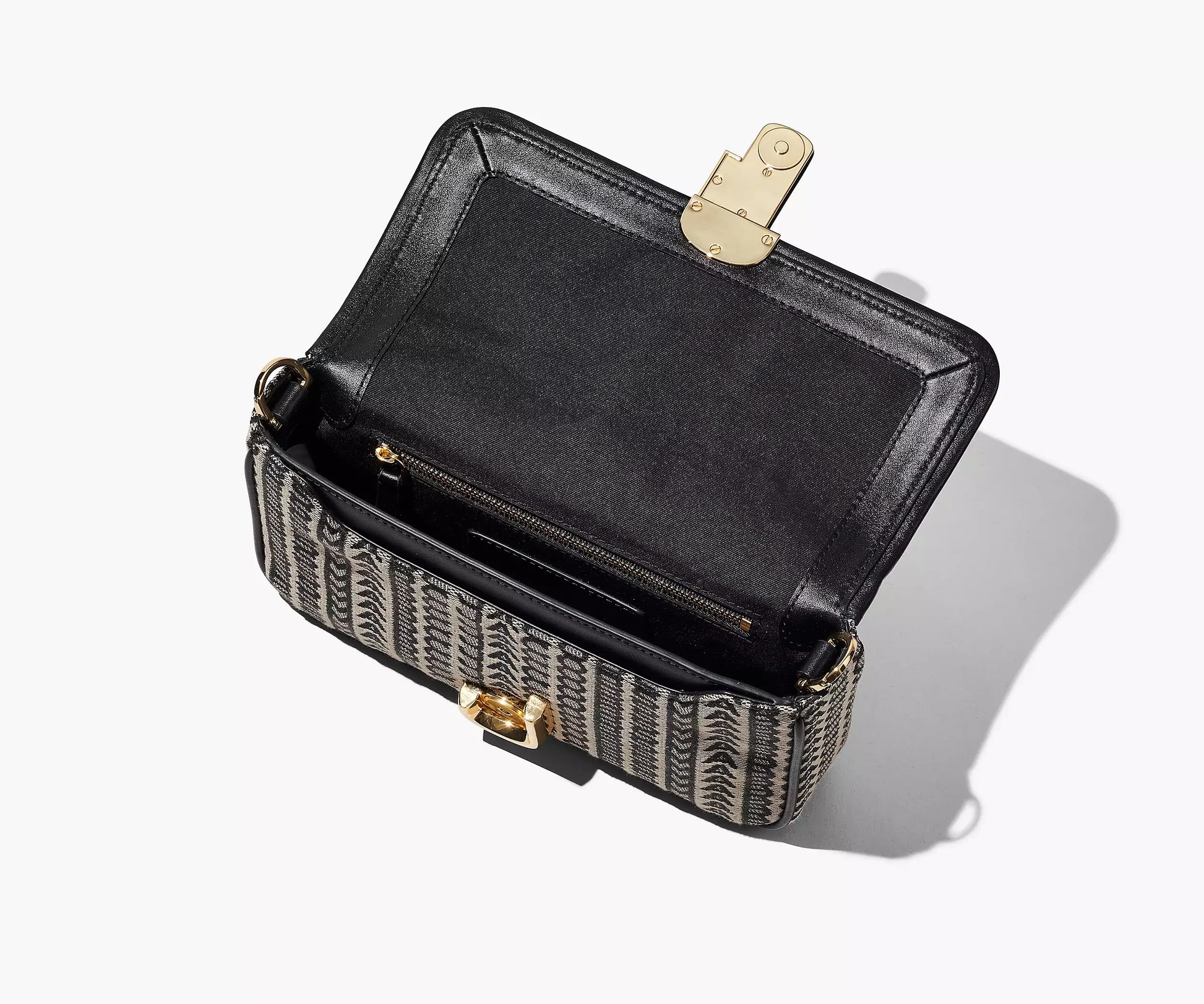 woven jacquard, leather trimmagnetic closureremovable shoulder chain strap, removable and adjustable webbing strap1 interior slip pocket, 1 interior zip pocket, 1 back slip pocketfaille lining