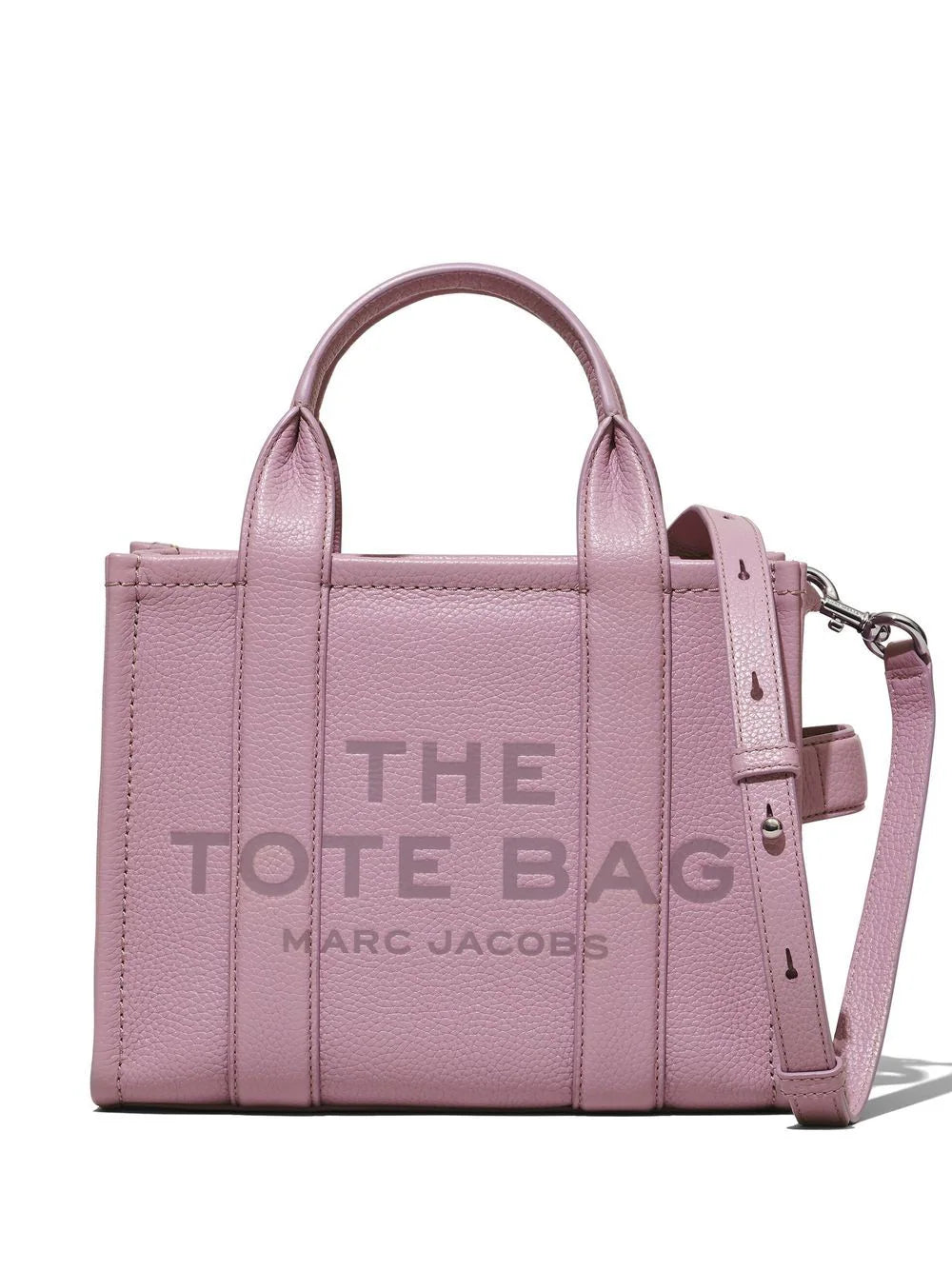 Marc Jacobs reimagines The Tote bag in smaller proportions. This iteration features the signature boxy silhouette and adjustable crossbody strap.