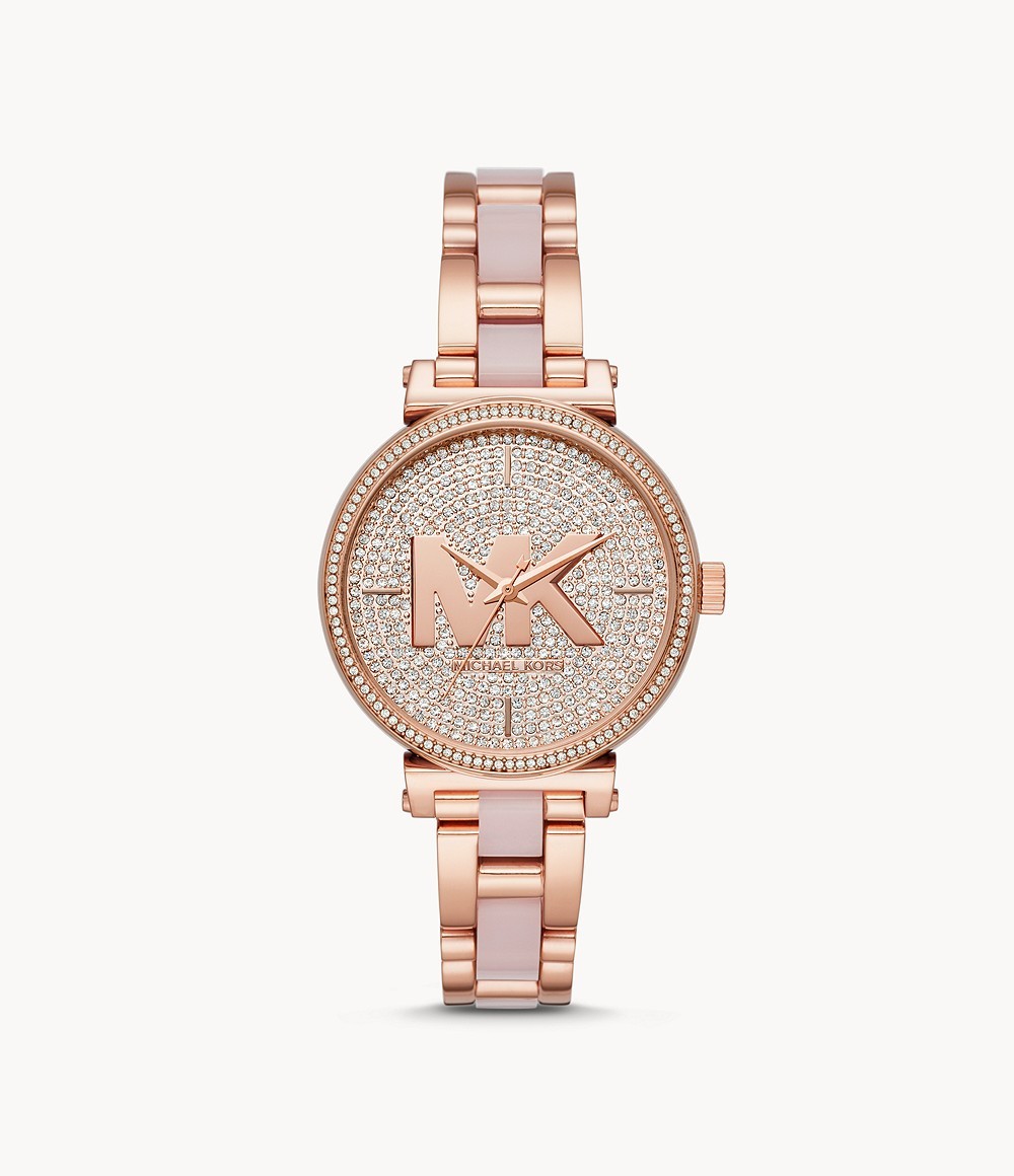 Michael Kors Women’s Quartz Stainless Steel Rose (MK Logo) Crystalset Dial 36mm Watch MK4336