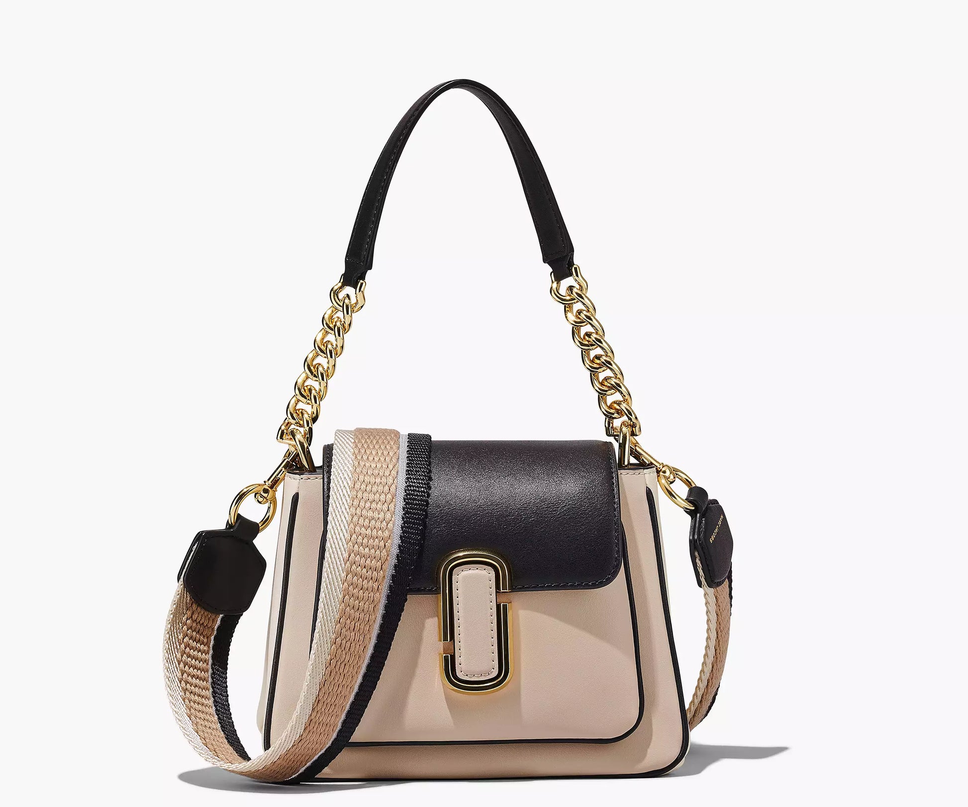 Influenced by previous runway collections, this supple leather colorblock satchel features archival detailing and is sealed with the signature J Marc hardware. With two ways to wear, go from day to dark seamlessly by swapping the webbing crossbody strap with the top handle strap.