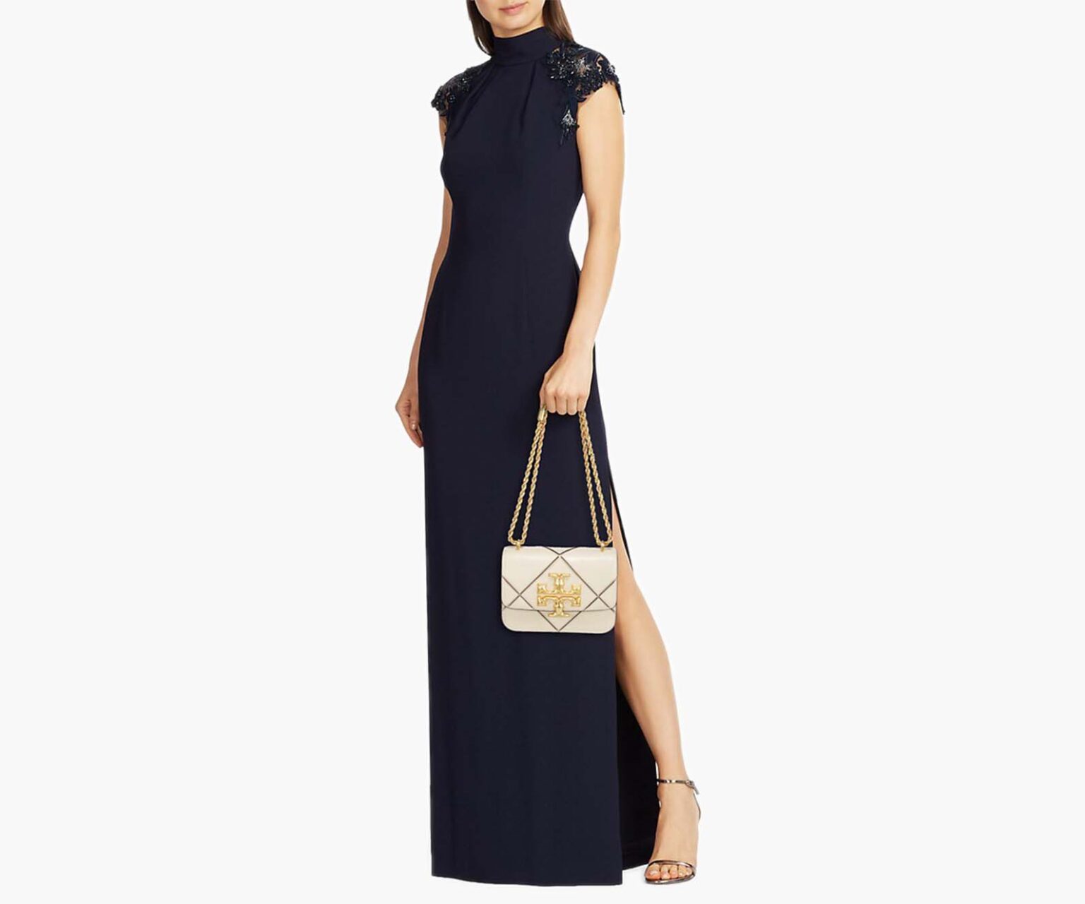 Signature hardware, scaled-up in sculptural brass. The Eleanor Bag puts extraordinary craftsmanship in focus: soft leather is rolled onto a suede underlay and intricately patchworked. The edges are painted by hand, to emphasize the clean lines. Its twisted rope chain is convertible: wear it doubled or long and crossbody.