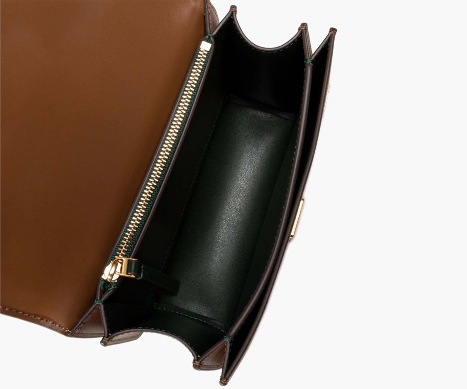 Signature hardware, scaled-up in sculptural brass. The Eleanor Small Bag is a structured shape in soft Italian leather — with edges that are painted by hand, to emphasize the clean lines. Its twisted rope chain is convertible: wear it doubled or long and crossbody.