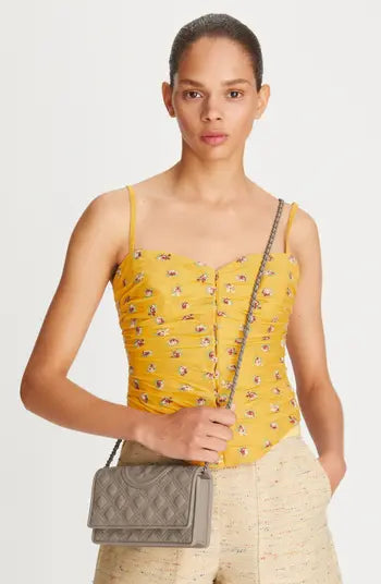 The new Fleming: a matte design with bolder diamond quilting, an embossed bombé Double T and a braided tonal chain strap. Exclusively available at toryburch.com and in our boutiques.