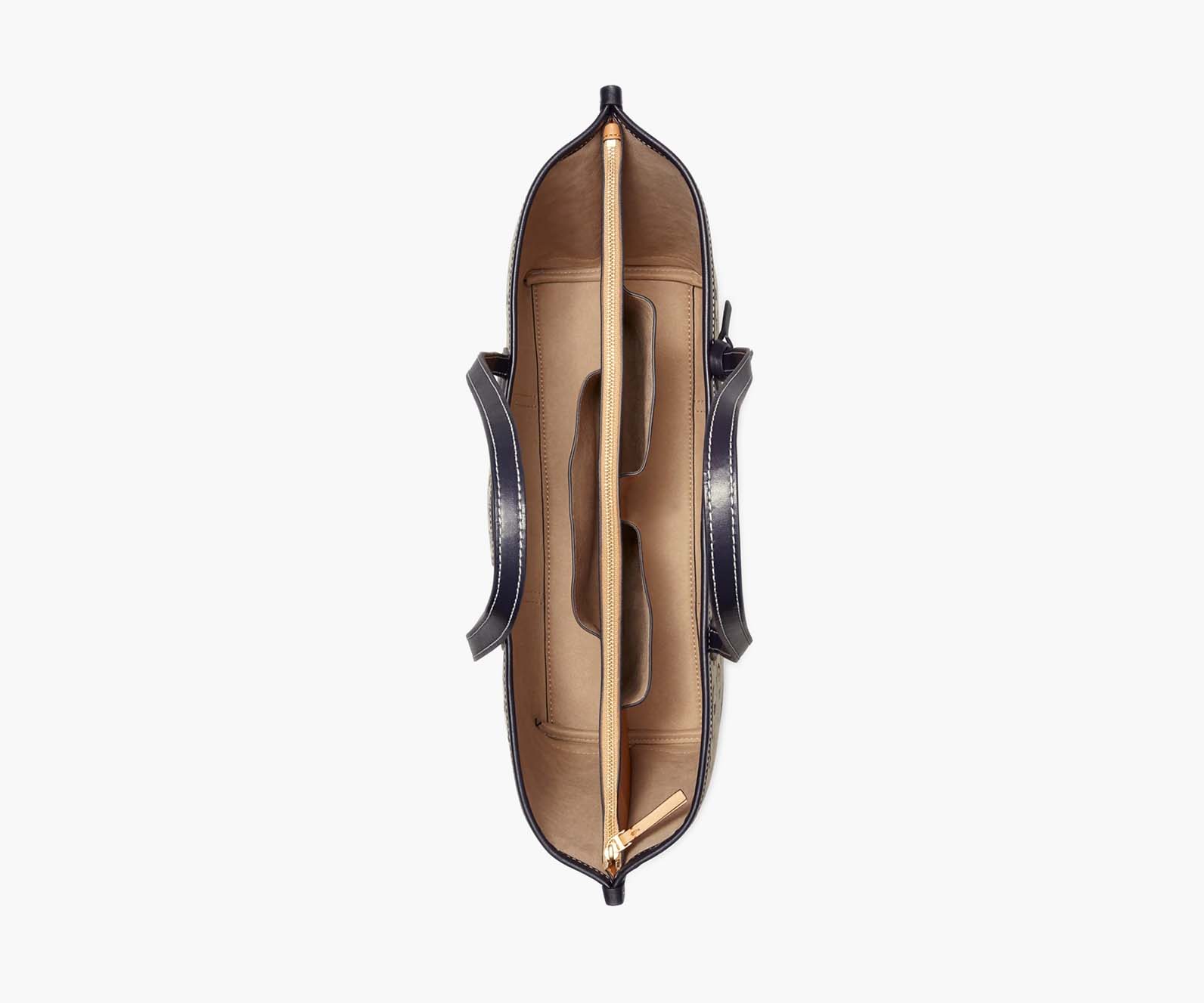 The Perry Triple-Compartment Tote is trimmed in fine leather and lined in soft microsuede. The interior has multiple pockets for organization, including a center compartment that fits a laptop. Every detail is considered, with special attention to function and versatility.