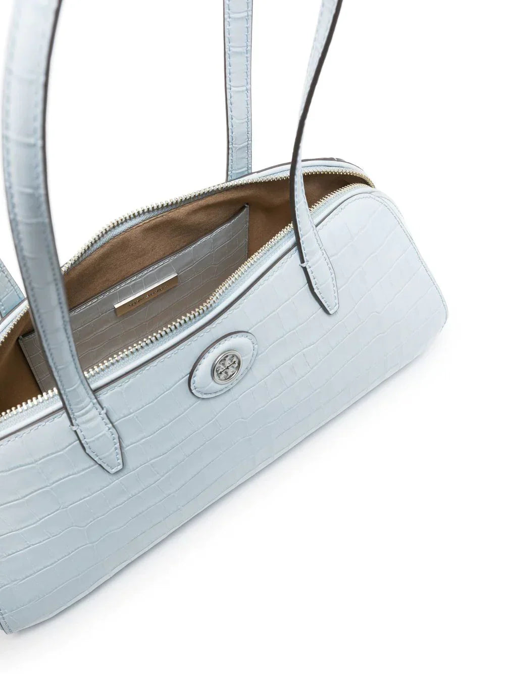 Defined by its effortlessly chic style, the Robinson shoulder bag from Tory Burch has a sleek design made of light blue calf leather. This model stands out thanks to its crocodile embossed finish and long top handles.