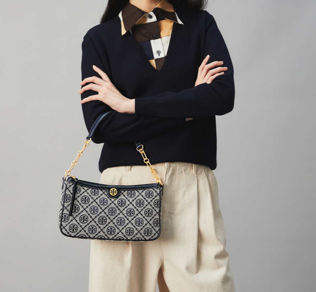 The T Monogram is a classic pattern inspired by traditional Pennsylvania Dutch quilting, and celebrating our graphic logo. Meticulously crafted in woven jacquard, the collection speaks to the timelessness of great style. Our new Studio Bag is inspired by the minimal, carefree attitude of ’90s style — worn crossbody or tucked under the arm. The slim silhouette is ready to go, day or night. Lined in soft microsuede, the interior has a pocket to organize small essentials. Every detail is considered, with special attention to function and versatility.